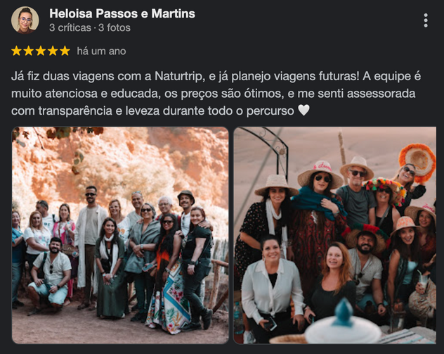 Natur Trip offers a unique immersion proposal, promoting a journey of discovery and adventure that promises to be memorable at all times. With a clear focus on the customer experience, every moment is carefully planned to offer something new and exciting to enjoy and remember. If you are looking for an authentic and enriching experience, choosing Natur Trip is a guarantee of an unforgettable trip that will remain vivid in your memory long after you return home.