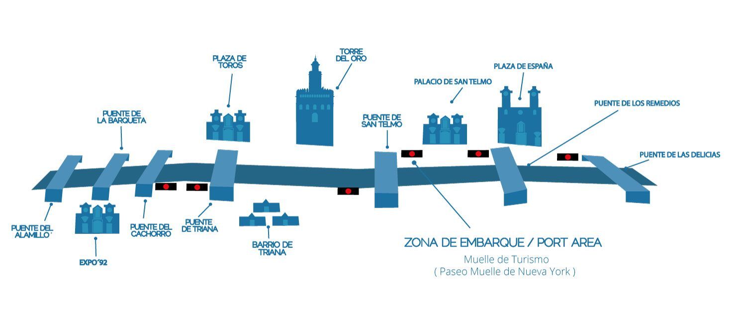 Conforto, elegância e um design exclusivo, os cruzeiros por Sevilha permitem ao cliente desfrutar de uma vista de 360º da capital sevilhana